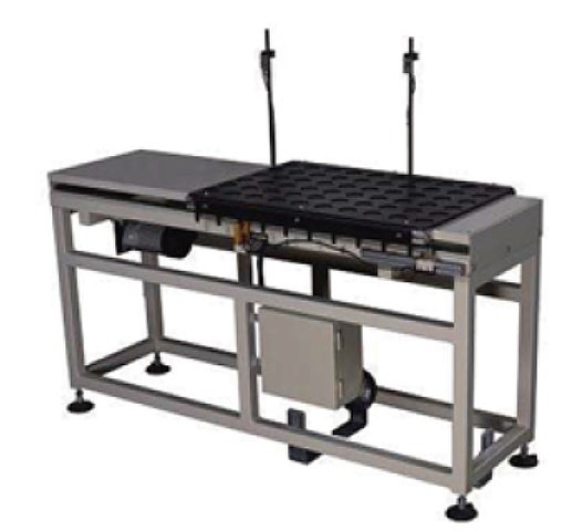 工件排列於可快換之定位板上,托盤由伺服定位機構準 確定位。